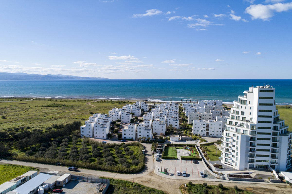 The complex ID 040 is located a few steps from a beautiful well-developed beach. The project offers all necessary amenities: an infinity pool, a restaurant, a spa, a fitness center, a jacuzzi, a heated indoor pool, a mini-market, a surf school, bars, and restaurants. The proximity to Guzelyurt provides the entire urban infrastructure, including shops, markets, schools and kindergartens, hospitals, and a university.