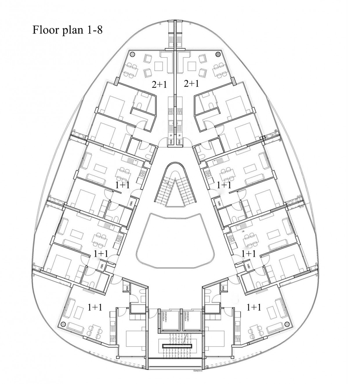 2+1 apartment consists of: