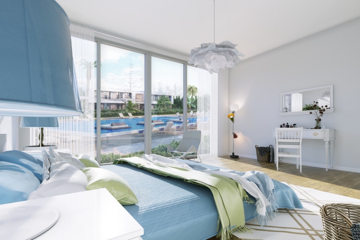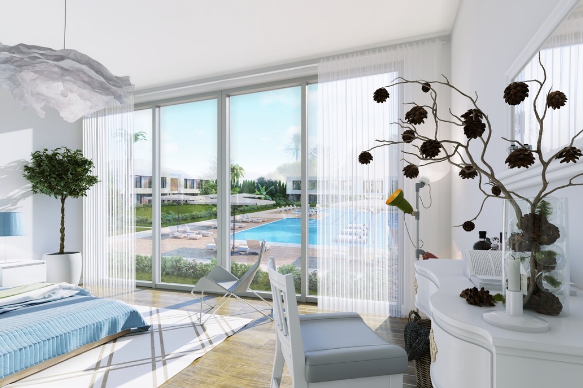 The new residential complex ID 042 is located on the 1st coastline of the greenest and most picturesque area of Northern Cyprus in the vicinity of Kyrenia and Esentepe. A unique landscape of a natural lagoon, surrounded by mountains, and green forests, combined with new environment-friendly technologies, and audacious architectural solutions, create a project without equals in Cyprus.
