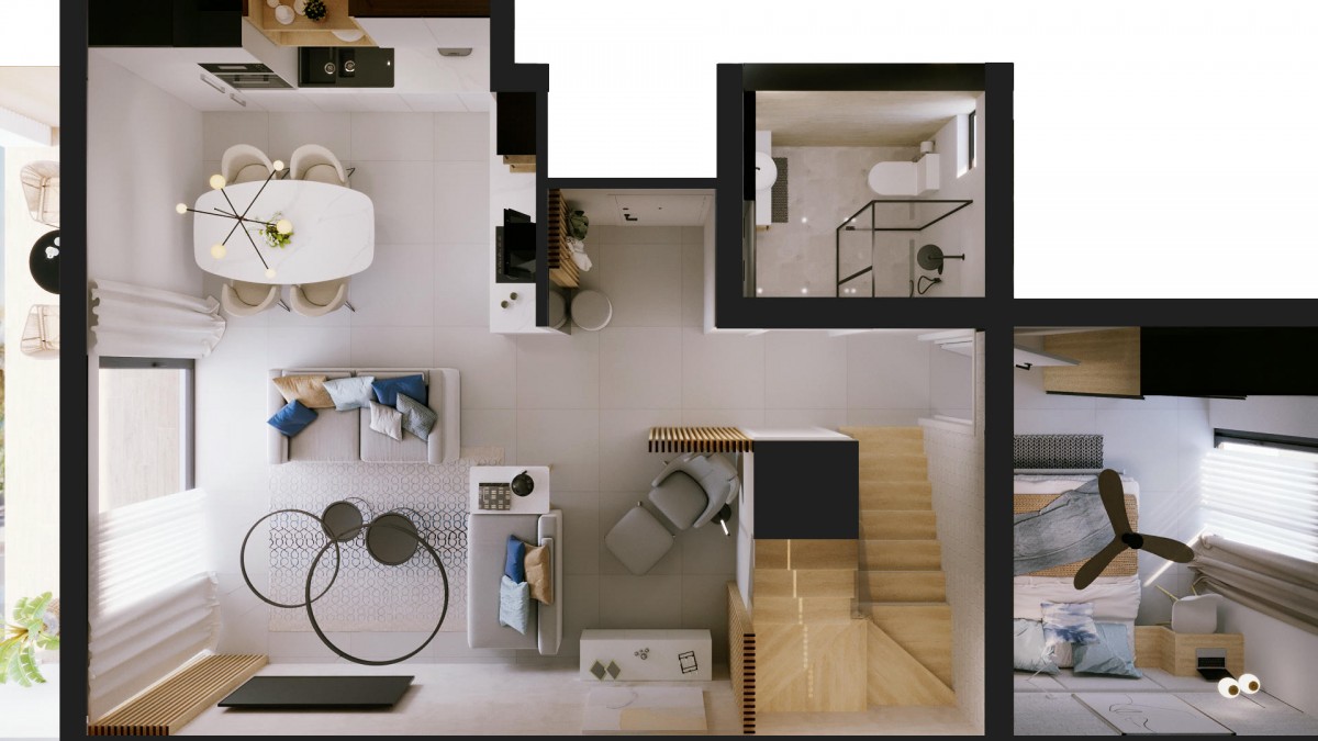 The villas can be paid in interest-free installments. The price of the villas includes full fit-out, built-in-furniture (built-in wardrobes in bedrooms, built-in kitchen), sanitary ware. A water pressure system, double-glazed windows, interior doors, underfloor heating in the bathroom, and a false ceiling with lighting are also already installed. The project is designed in a modern style, with the use of high-quality materials to ensure comfortable life on the coast.