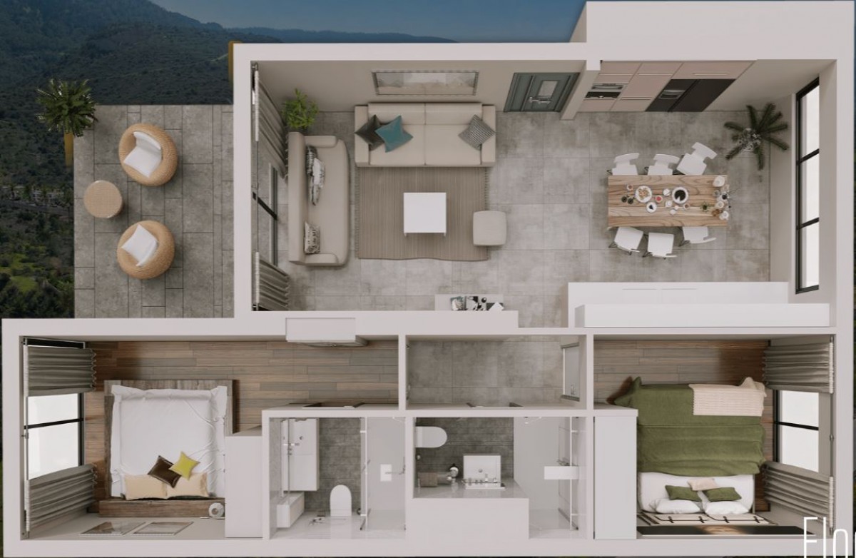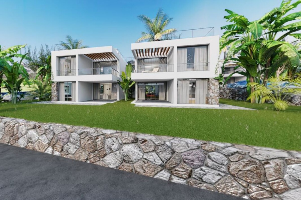 The residential complex ID 087 is located on a large plot of land close to a well-equipped beach. The popular Korineum Golf & Beach Resort is just a 10-minutes' drive away, while Kyrenia (Girne) city is only 20-minutes' drive away. The city offers an extended infrastructure: a large variety of stores, restaurants, and coffee bars, a supermarket, pharmacies, banks, a market, schools, and kindergartens, universities, and much more.