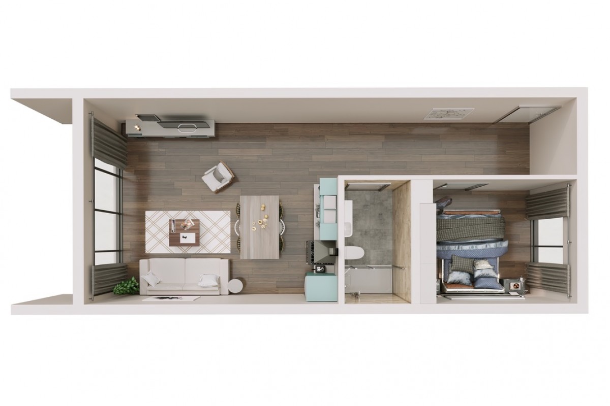 1+1 apartment consists of: