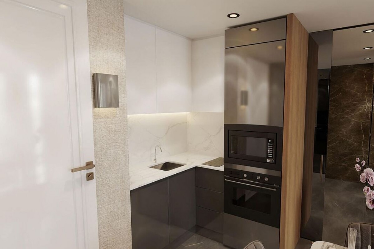 Interest-free installment plan is provided for the apartments of ID 105 complex. The price includes design interiors and top-class building materials, full interior finishing, built-in furniture, sanitary ware, large-sized porcelain ceramics, built-in shower systems, walk-in showers, stainless steel linear floor drains, granite countertops. The terrace offers a 180-degree sea view.