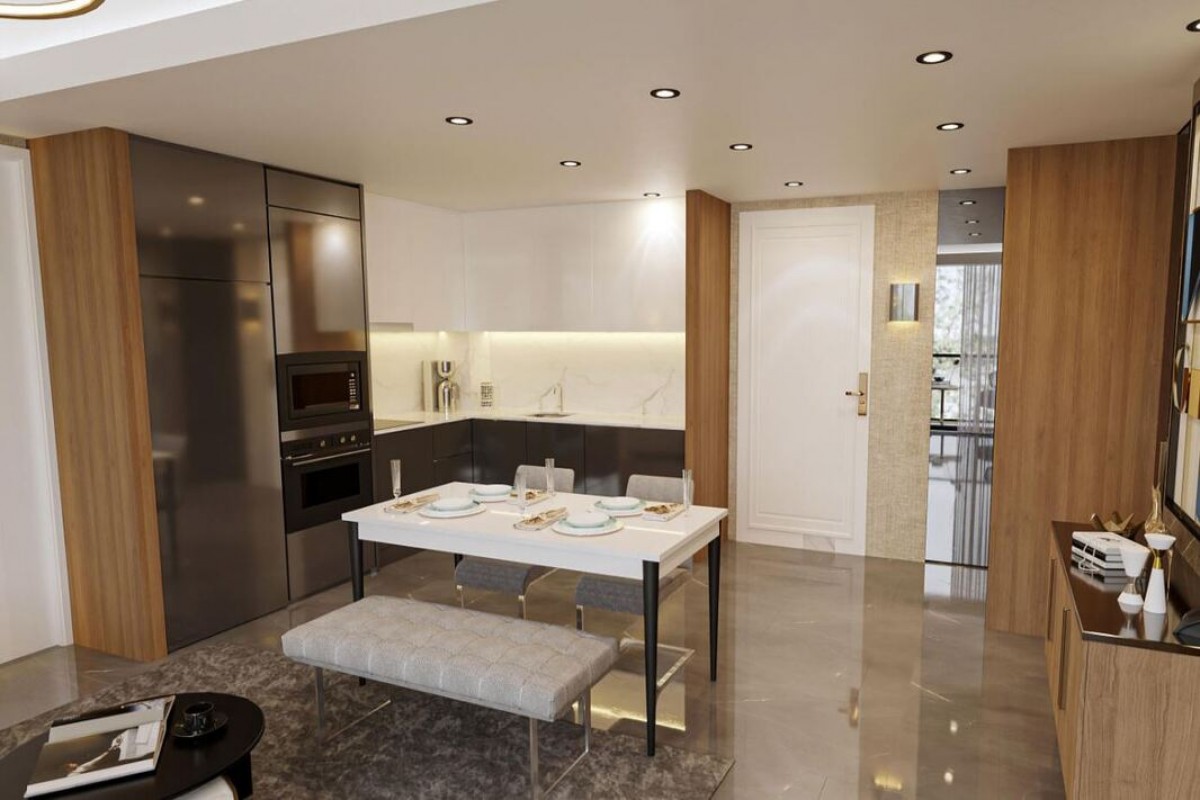 Interest-free installment plan is provided for the apartments of ID 105 complex. The price includes design interiors and top-class building materials, full interior finishing, built-in furniture, sanitary ware, large-sized porcelain ceramics, built-in shower systems, walk-in showers, stainless steel linear floor drains, granite countertops. The terrace offers a 180-degree sea view.