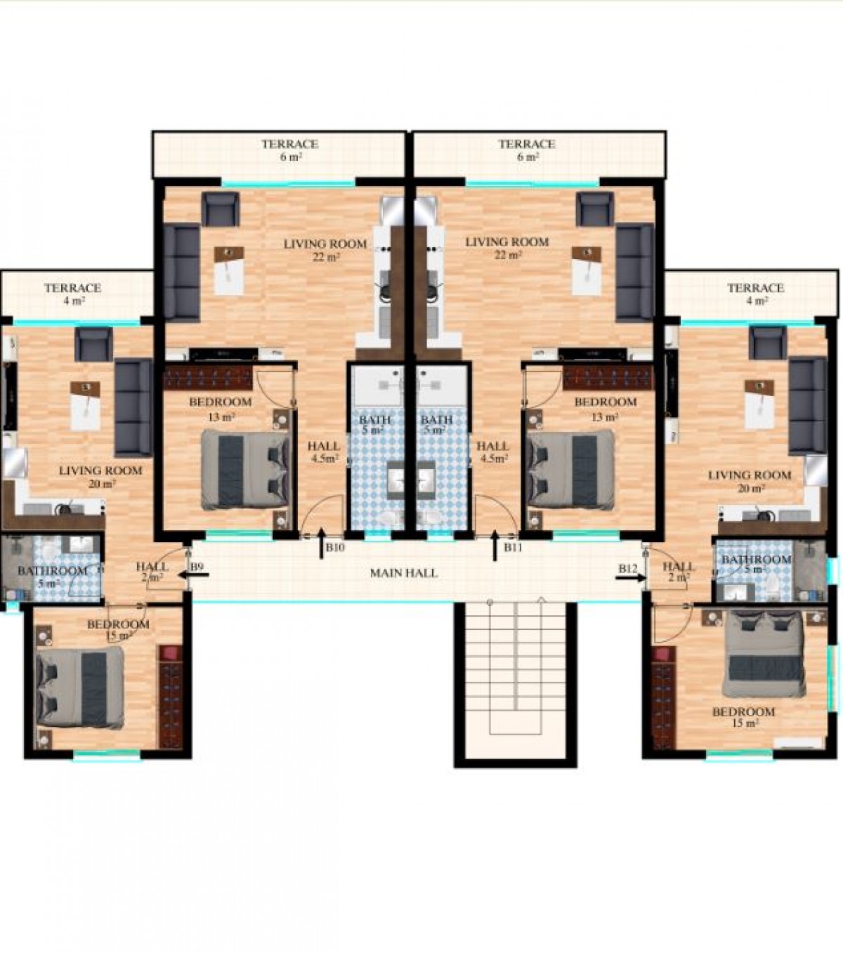 Apartment 1+1 penthouse consist of:
