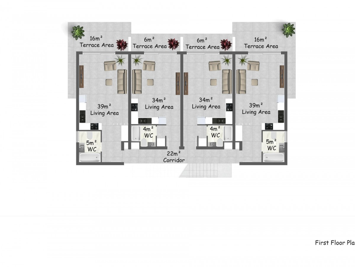 There are lots of restaurants, coffee bars, filling stations, car rental offices, and shops around the residential complex, that is close to the beach and the popular Korineum Golf & Beach Resort. A 15-minutes' drive away there is the city of Kyrenia (Girne), offering a developed urban infrastructure (a large variety of shops, restaurants and cafes, a supermarket, pharmacies, banks, a market, schools and kindergartens, universities and much more).