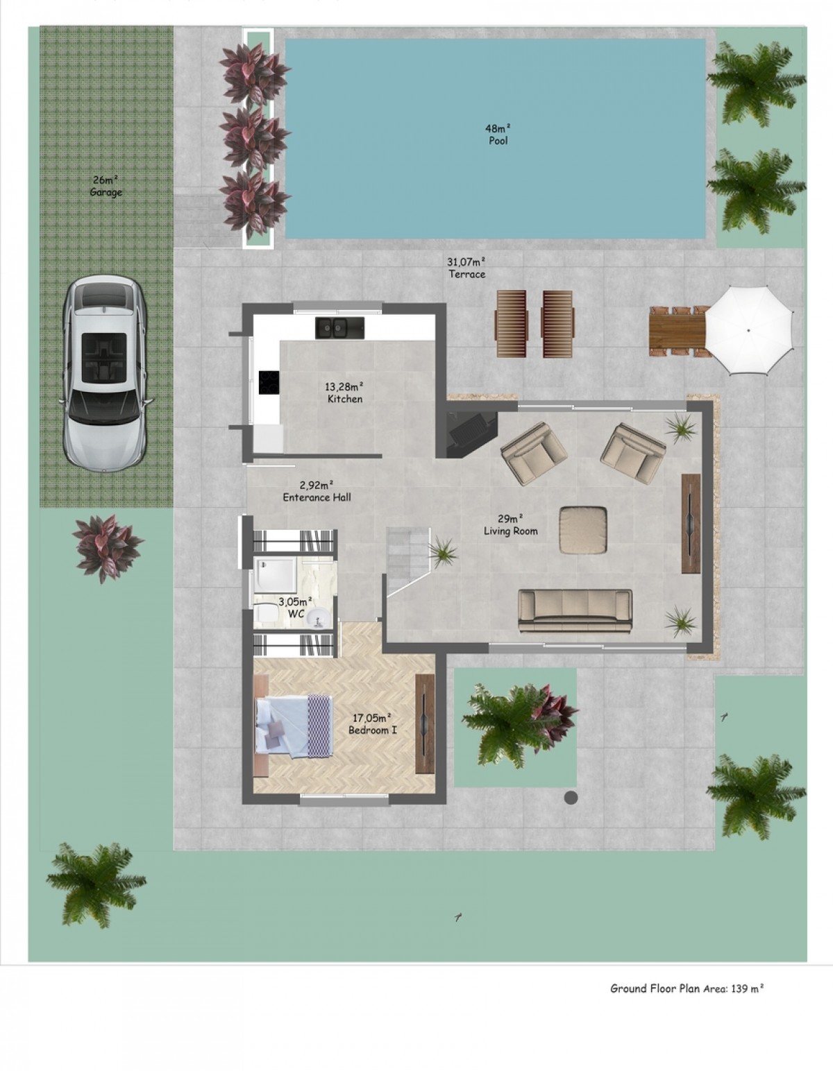 Villa 3+1 consist of: