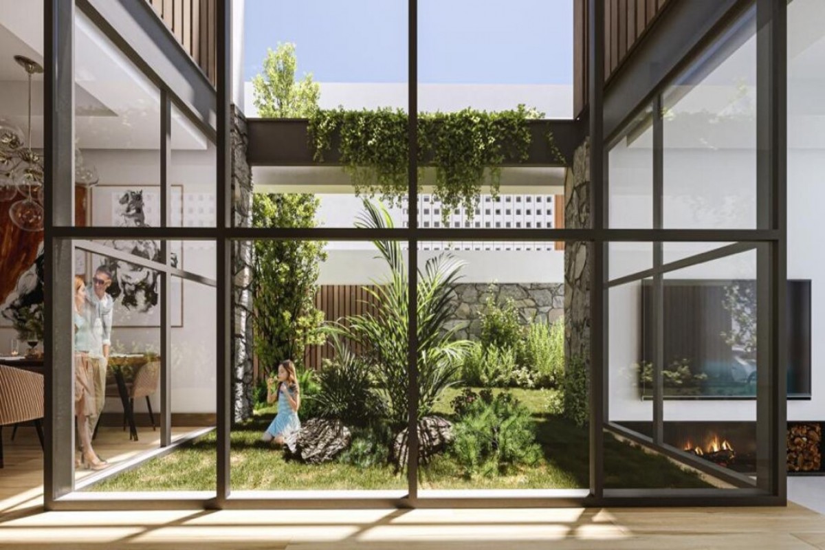 Townhouses are provided with interest-free instalment plan. The price includes full interior finishing, built-in furniture (all bedrooms are equipped with built-in wardrobes, built-in kitchen), sanitary ware, flooring. The houses are fitted with a water pressure system, floor-to-ceiling windows with double glazing, interior doors, air conditioning system, infrastructure of central satellite and internet systems. The project is executed in a modern style with the use of high-quality materials. It is possible to install a private pool for an extra charge.