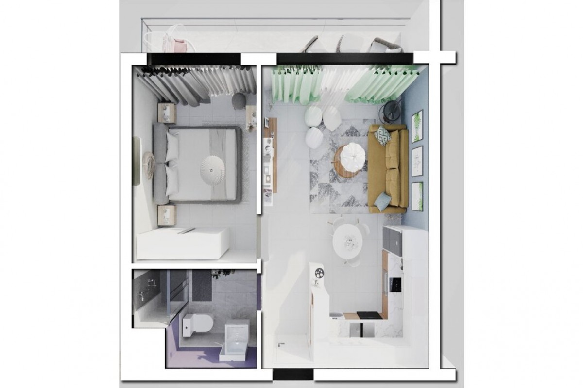 There is an interest-free instalment payment plan for apartments. The price includes full interior finishing, built-in furniture (built-in wardrobes in all bedrooms, built-in kitchen cabinets in the kitchen), sanitary ware, ceramic flooring. The apartments are fitted with air conditioning system, internet system, double glazed windows, interior doors, video surveillance system. Apartments on the ground floor have a private garden.