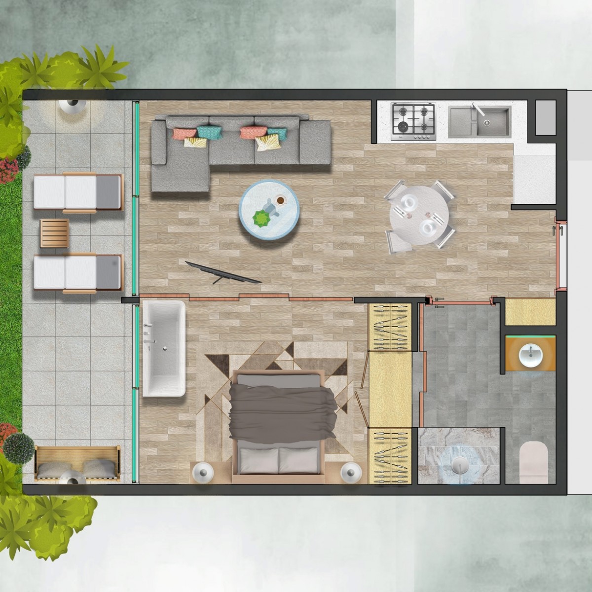Apartment 1+1 penthouse consist of: