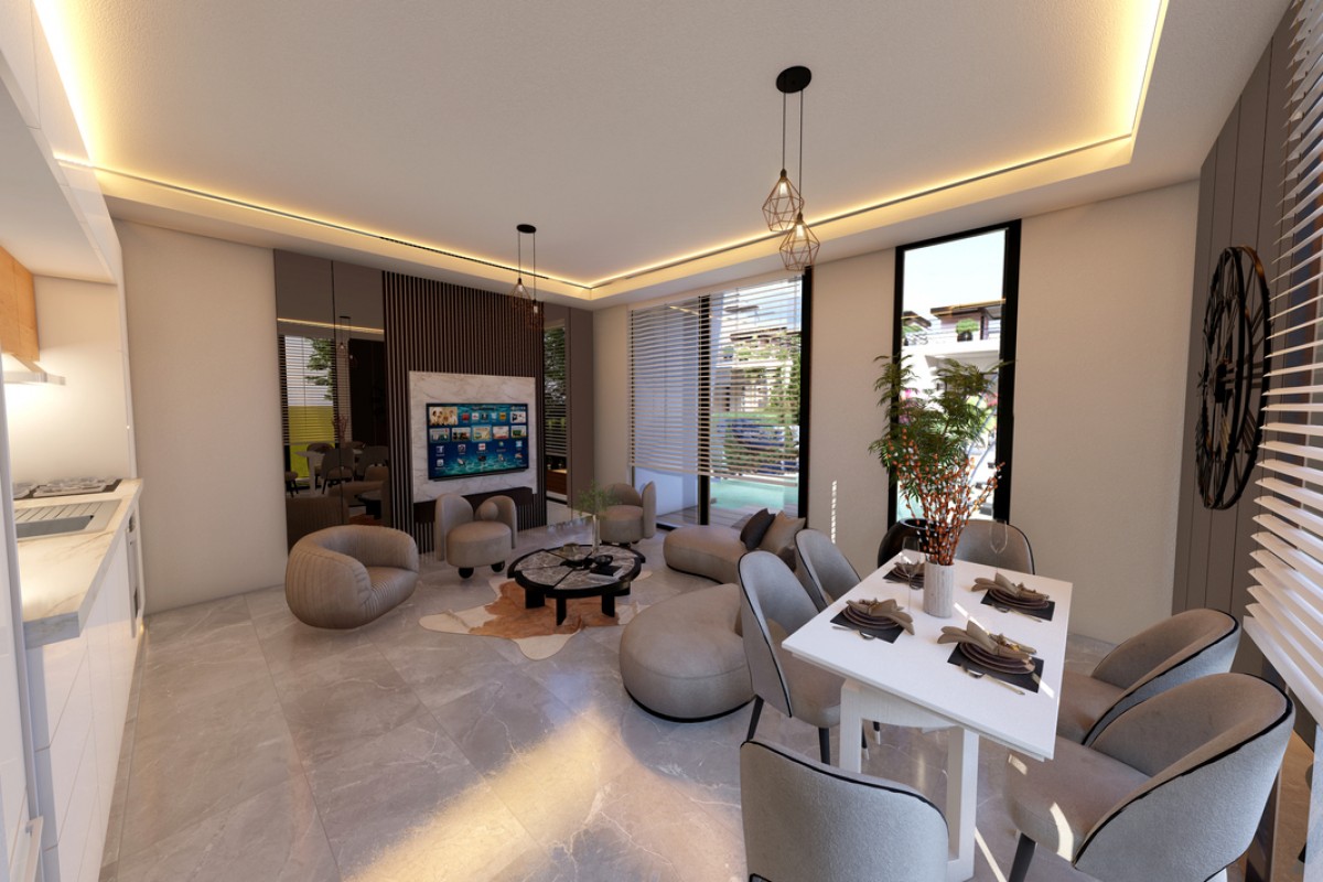 The new under construction ID 145 complex is located in Lapta, just 300 meters from the beach with gentle entrances to the sea. Nearby there are supermarkets, cafés, restaurants, a sports club, an auto repair shop, filling stations, and pharmacies. The project is surrounded by picturesque landscapes. The complex provides for access roads, landscaped territory, recreation areas around the pool, parking spaces.