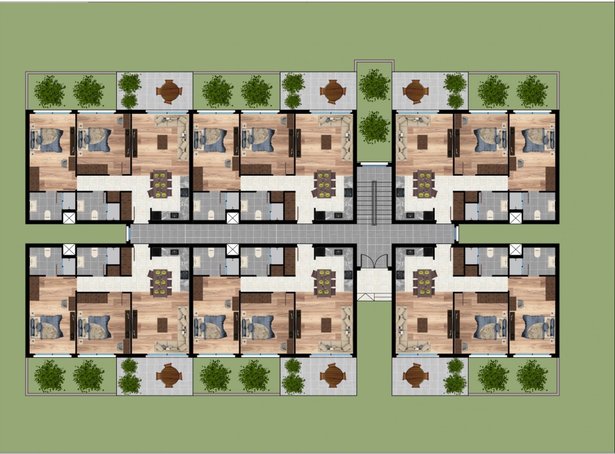 When buying a property, an interest-free installment plan is provided. The price includes full interior finishing, built-in furniture (built-in wardrobes in all bedrooms, built-in kitchen cabinets), sanitary ware, flooring, water pressure system, air conditioning system, central satellite TV, central internet system, as well as double glazed windows, interior doors, IP intercom. The complex is equipped with access roads and parking spaces, security and barrier systems, an underground central water tank, an automatic central generator system. The territory is ennobled with landscape design. The infrastructure includes outdoor pools, a mini water park, a heated indoor pool, a mini market, a gym, a sauna, a restaurant, a café, an outdoor kids playground, an indoor game zone, a beauty salon, and a management office.