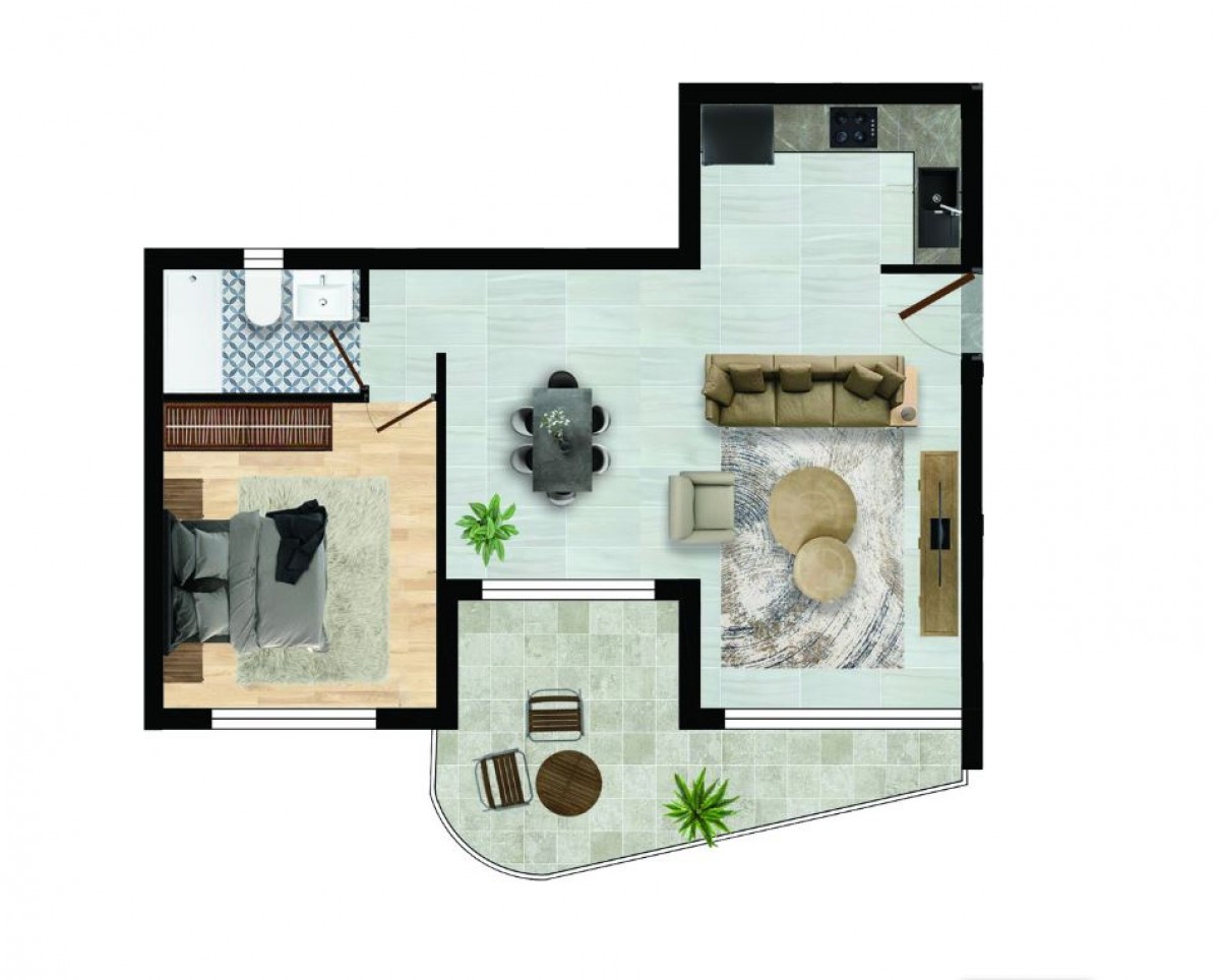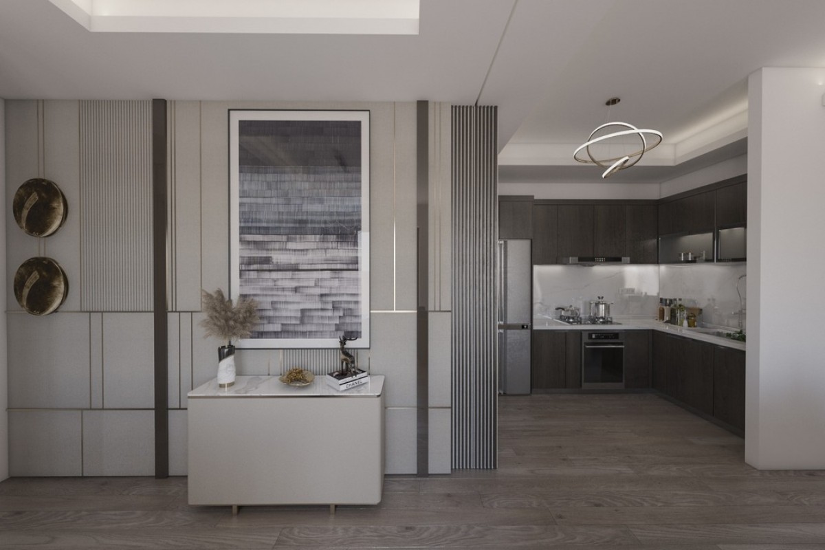 When buying a property here, an interest-free installment plan is provided. The price includes full interior finishing, built-in furniture (built-in wardrobes in all bedrooms; built-in kitchen cabinets), flooring, sanitary ware, and equipped bathrooms. The apartments are fitted with a water pressure system, central satellite TV, central internet system, central air conditioning, sound insulation, central heating infrastructure, underfloor heating in the bathroom, as well as double glazed windows, interior doors, and an entrance door with a magnetic lock.