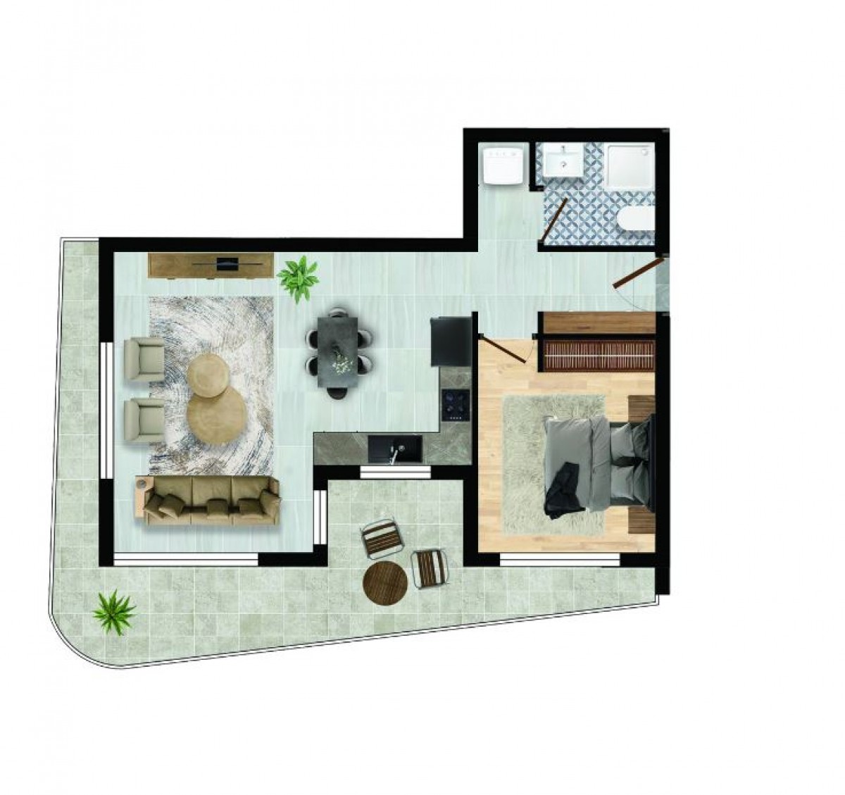 When buying a property here, an interest-free installment plan is provided. The price includes full interior finishing, built-in furniture (built-in wardrobes in all bedrooms; built-in kitchen cabinets), flooring, sanitary ware, and equipped bathrooms. The apartments are fitted with a water pressure system, central satellite TV, central internet system, central air conditioning, sound insulation, central heating infrastructure, underfloor heating in the bathroom, as well as double glazed windows, interior doors, and an entrance door with a magnetic lock.