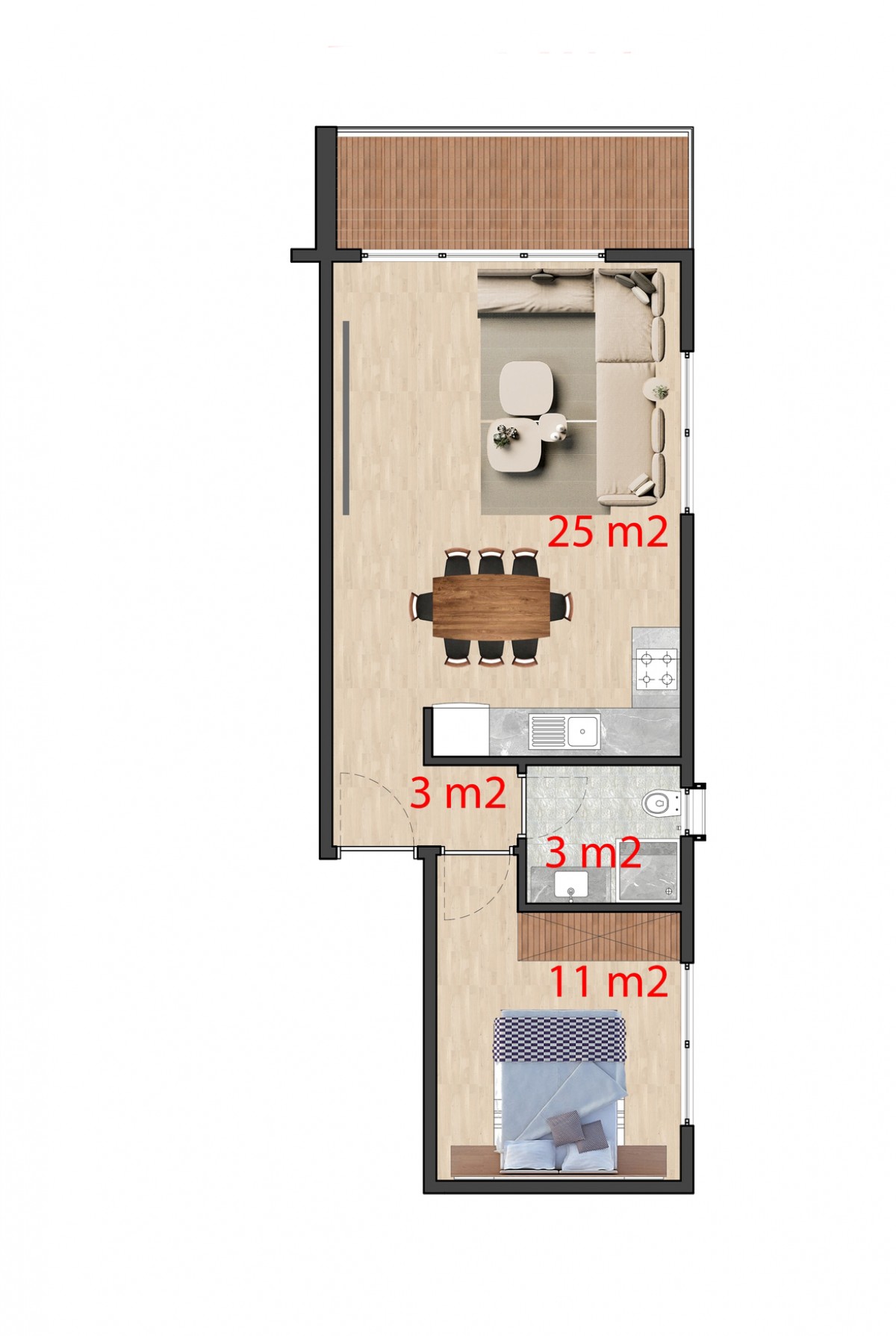 Apartment 1+1 consist of: