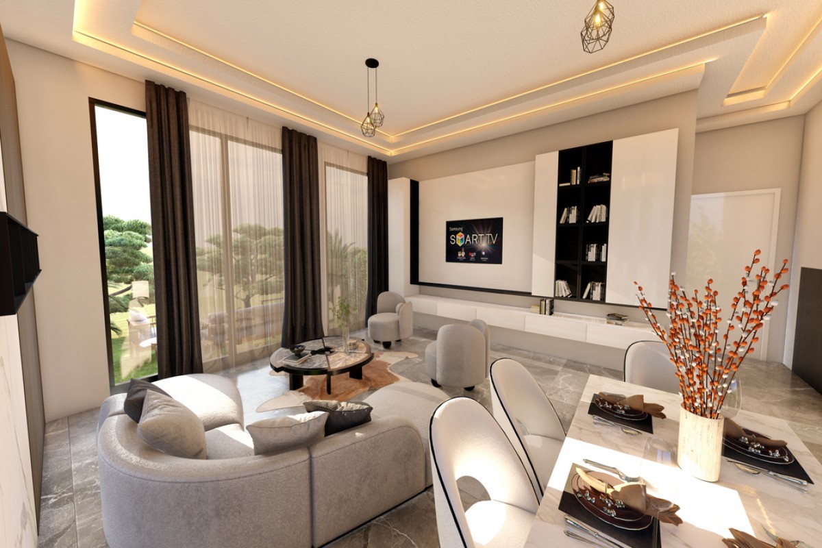 The new residential complex ID 155 is located at the foot of the mountains in the picturesque area of the village of Alsancak. The landscaped territory of the complex has a communal pool, recreation areas, a playground, a park with walking paths. Nearby there is a large children's playground with a mini-zoo. Within walking distance from the complex there is the British College (from 2 to 17 years old).