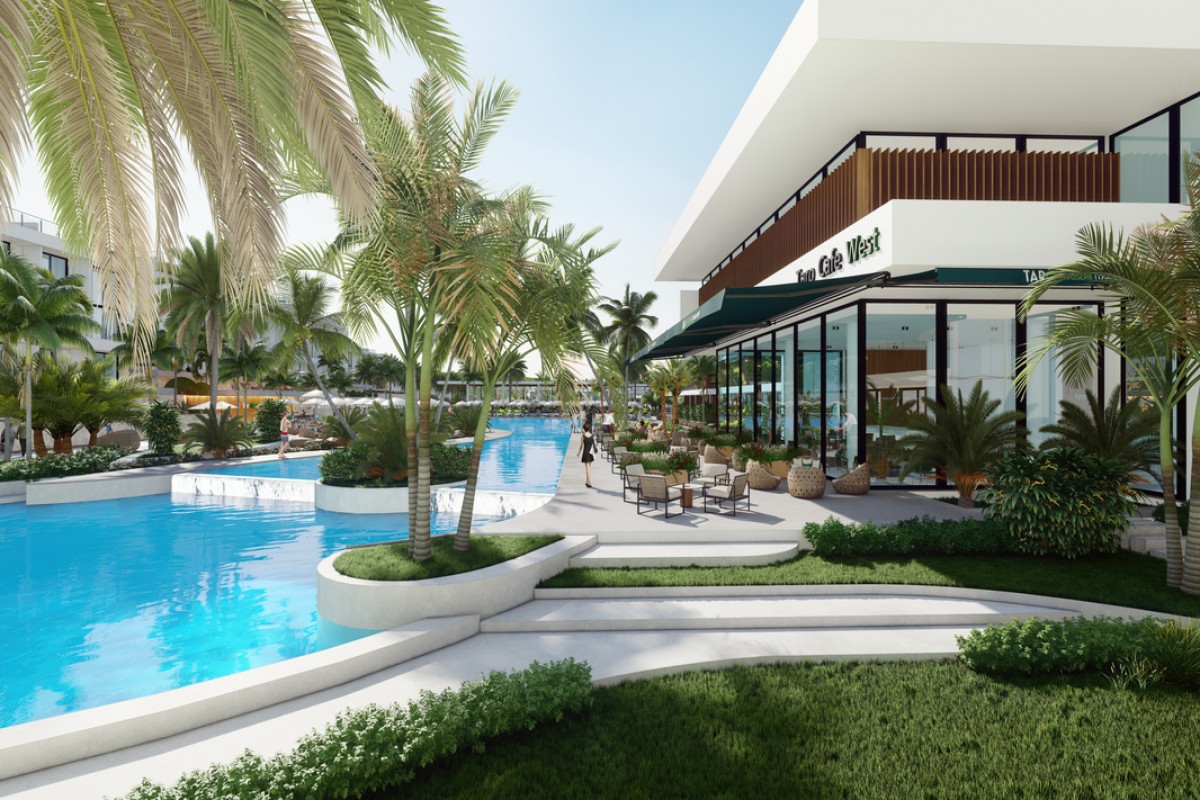 Quarter ID 158100 stays in the very heart of the complex. It consists of 9 blocks with 370 real estate units, which are located around two spacious pools. Social amenities: a restaurant, a cafe, a pool bar, and a hotel lobby with a reception desk that serves residents and guests.
