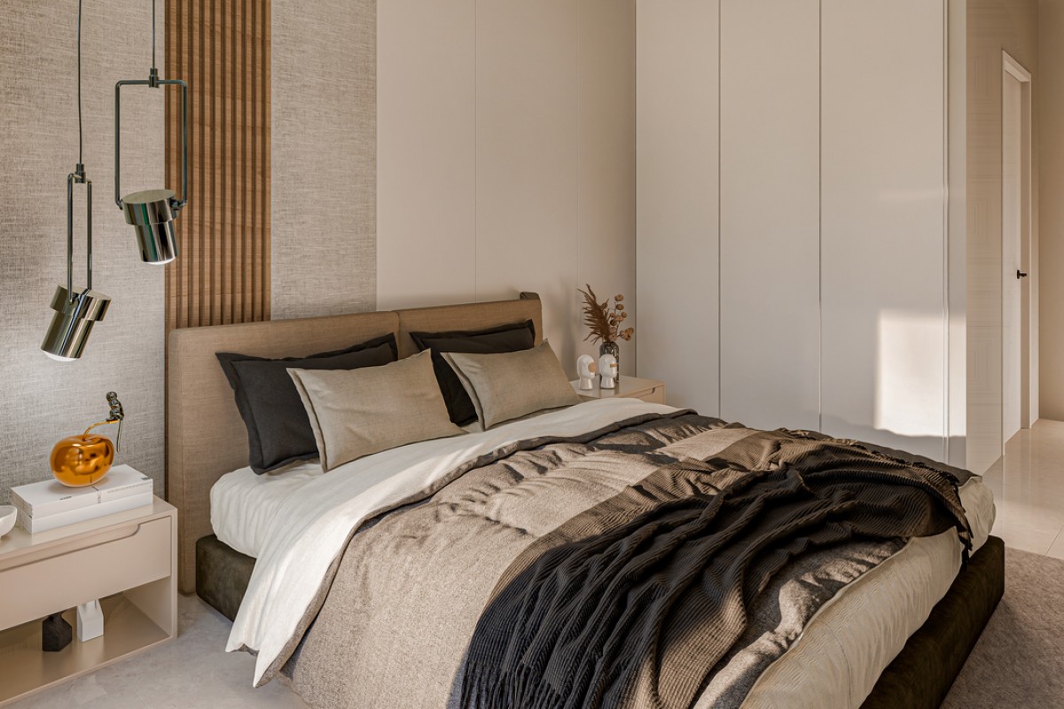 Interest-free installment plan is provided. The price of apartments includes full interior finishing, built-in furniture (built-in wardrobes in all bedrooms, built-in kitchen cabinets), sanitary ware. The apartments are fitted with a water pressure system, double glazed windows, interior doors.