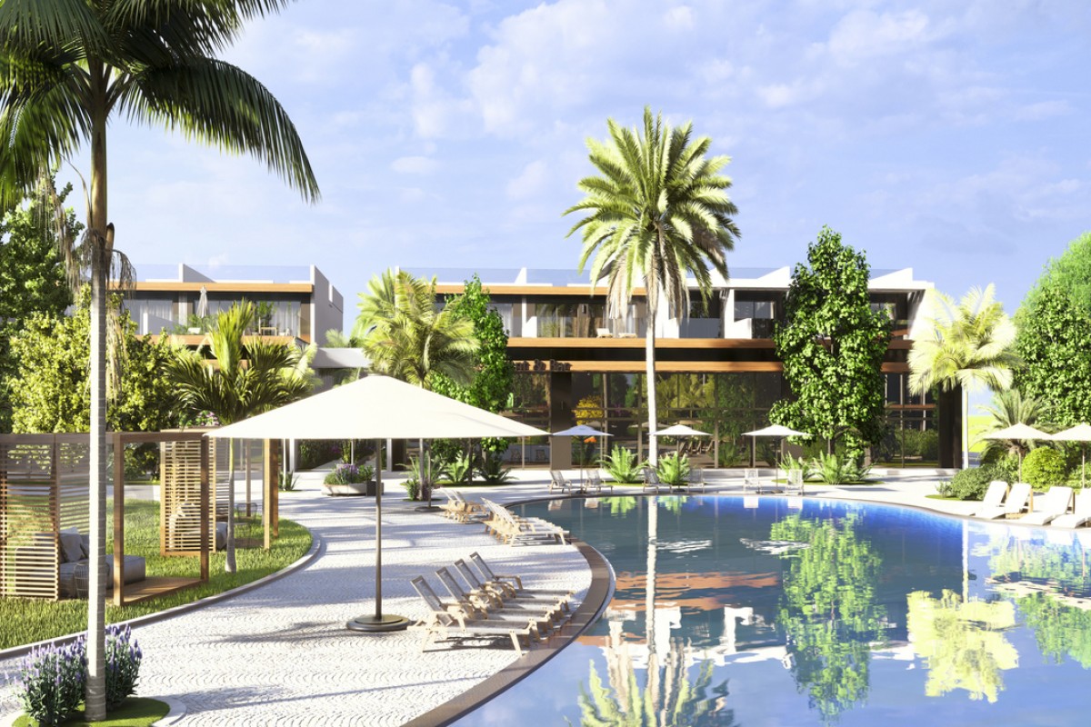 Ground floor apartments have private gardens, while first floor apartments have spacious terraces with the possibility of installing a jacuzzi. All residential blocks are built around a communal pool. The landscaped territory of the complex with lots of green plantings, recreation areas, a children's playground, and a multifunctional sports ground, is equipped with a 24-hour video surveillance system, access roads and parking spaces as well.