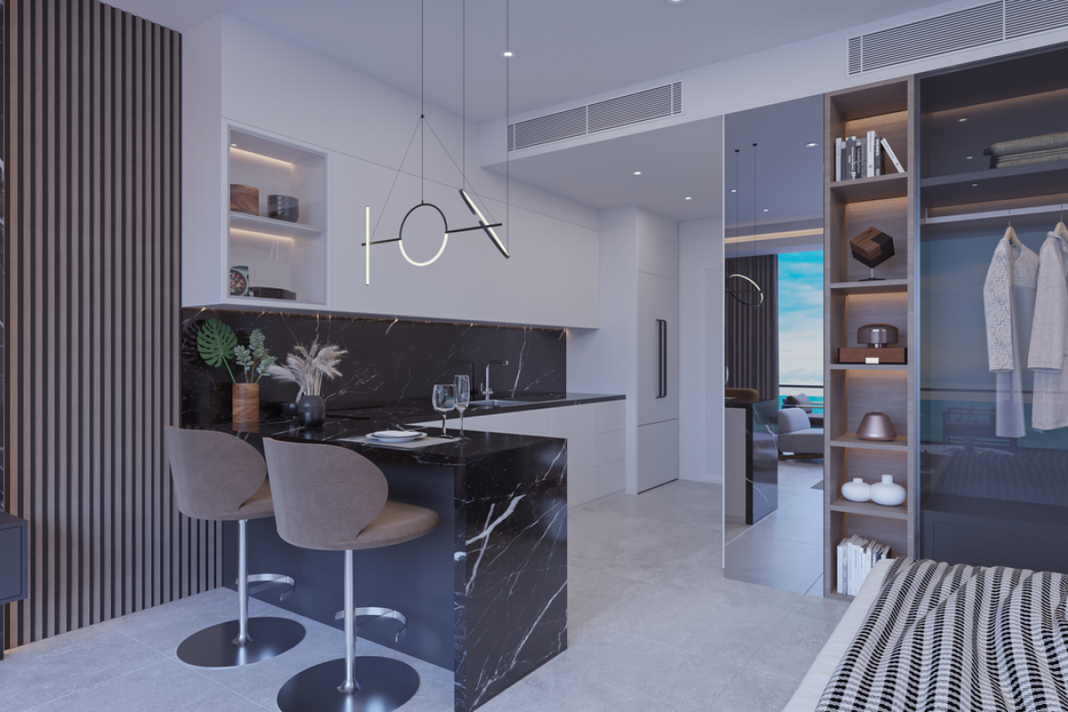 Residential complex ID 183 is located on the Long Beach coast in the Iskele area just 500 meters from the sea. The large-scale project offers a privileged luxury lifestyle. The complex has a closed area with a guarded entrance and consists of 5 multi-story residential blocks (29 floors) and 10 five-story residential blocks with a business center and commercial areas. There are studio apartments, apartments with 1, 2, and 3 bedrooms, as well as luxury 3+1 and 4+1 penthouses with spacious terraces, private pools, and 180-degree sea views.