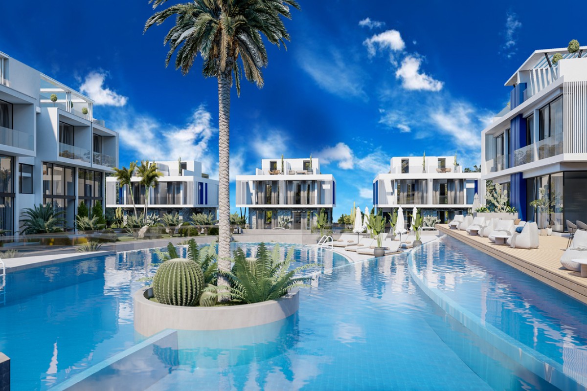Project ID 187 is the following stage of ID 152 complex, that is already under construction. ID 187 is located 650 meters from the sea in the Tatlisu area. This project offers ground floor 1+1 loft apartments with a terrace and a garden, first floor 1+1 penthouses with roof terraces and beautiful sea views, and 2+1 townhouses with roof terraces. Proximity to the sea, extensive infrastructure, and the advantageous location of the ID 187 project in one of the best areas of Northern Cyprus creates attractive conditions for a comfortable living on the coast, and offers excellent investment opportunities.