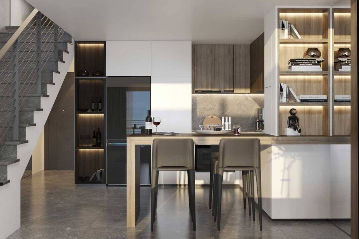 The price includes full interior finishing, built-in furniture (built-in wardrobes in the bedrooms, built-in kitchen cabinets with stone countertops), sanitary ware, equipped shower cabins, flooring. A water pressure system, double glazed windows, and interior doors are installed.