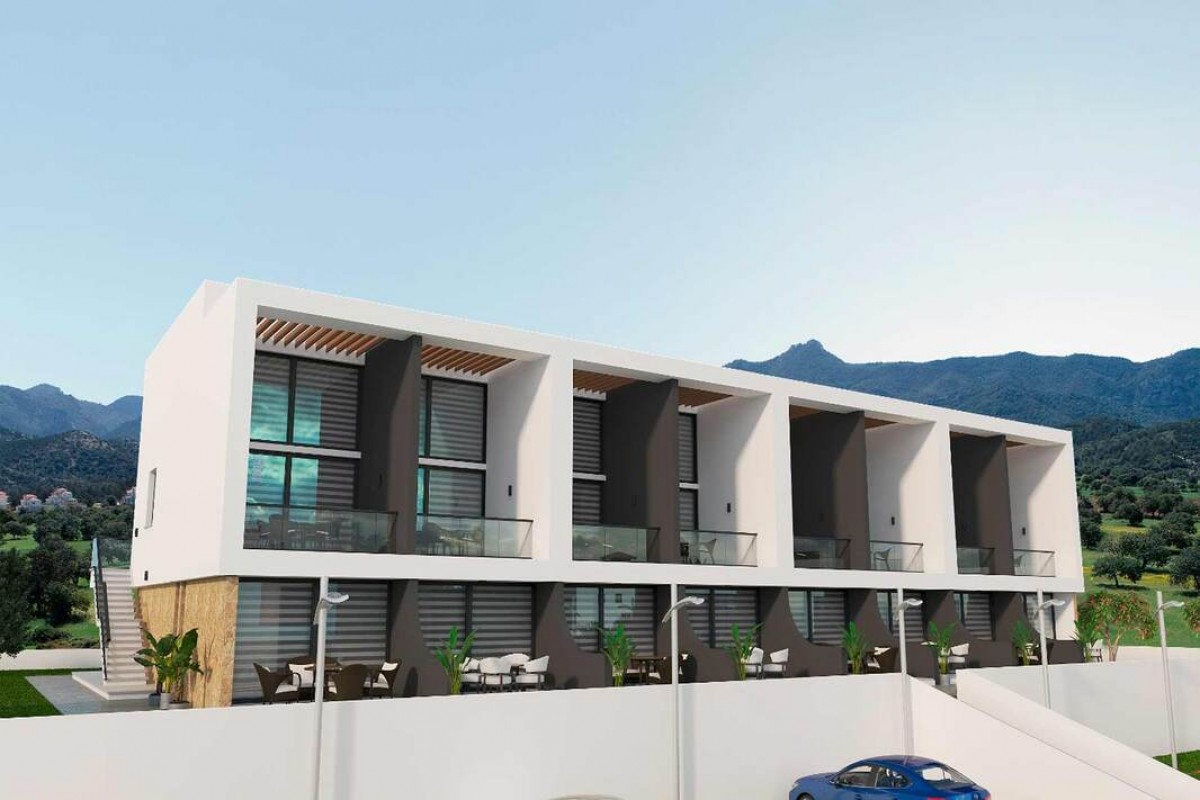 ID 208 residential project is located 900 meters from the coastline of the northern coast in the Tatlisu area. Tatlisu is famous for its magnificent and untouched natural landscapes. This is the main area for fresh vegetables, fruits and olives growing on the island. Nestled between the coastline and mountain landscapes, ID 208 project consists of one low-rise residential block with 1+1 apartments and 1+1 duplex lofts, and 22 townhouses 2+1 with roof terraces. All apartments in the complex have panoramic views of the sea and mountains.