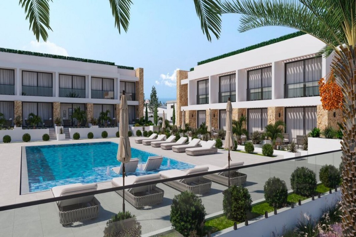 The new project ID 229 is located on the northern coast, 350 meters from the well-equipped beach on the border of the Esentepe and Tatlisu districts. The complex has a closed territory and is represented by two-story residential blocks: