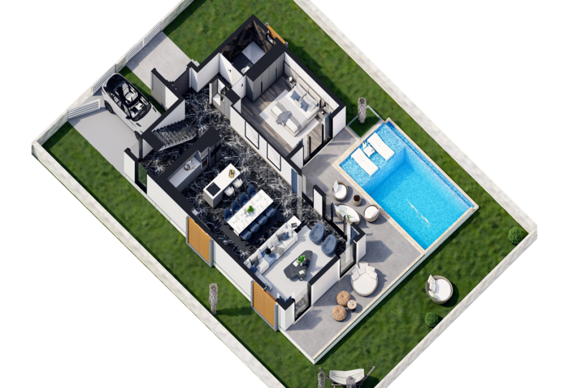 There is an interest-free installment plan provided. The price includes full interior finishing with the use of high quality materials, built-in furniture (built-in wardrobes in the bedrooms, and built-in kitchen cabinets), sanitary ware, equipped shower cabins, ceramic flooring in all rooms and tiles in bathrooms, and a boiler. All units are fitted with a water pressure system, double glazed windows, entry and interior doors, satellite and internet system.For an additional fee, one can install a private pool on the plot, a jacuzzi on the roof or a furniture package.
