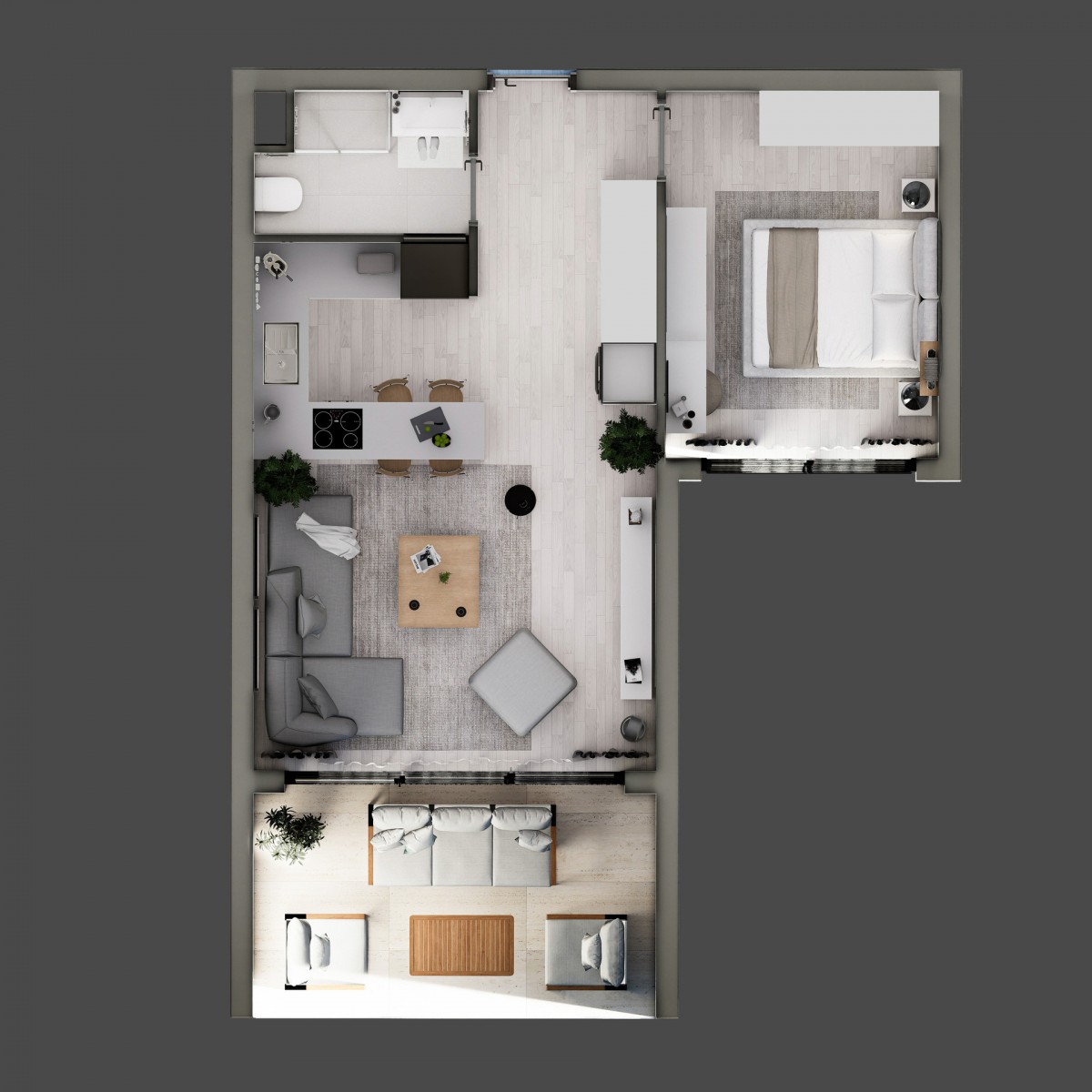 There is an interest-free installment payment plan provided. The price includes full interior finishing, built-in furniture (built-in wardrobes in bedrooms and built-in kitchen cabinets in the kitchen), sanitary ware, equipped shower cabins, flooring in all rooms. All apartments are fitted with a water pressure system, double-glazed windows, entry and interior doors, satellite and Internet systems. The project is completed using high-quality materials. 1+1 apartments on the ground floor have terraces next to the communal pools located along the blocks.