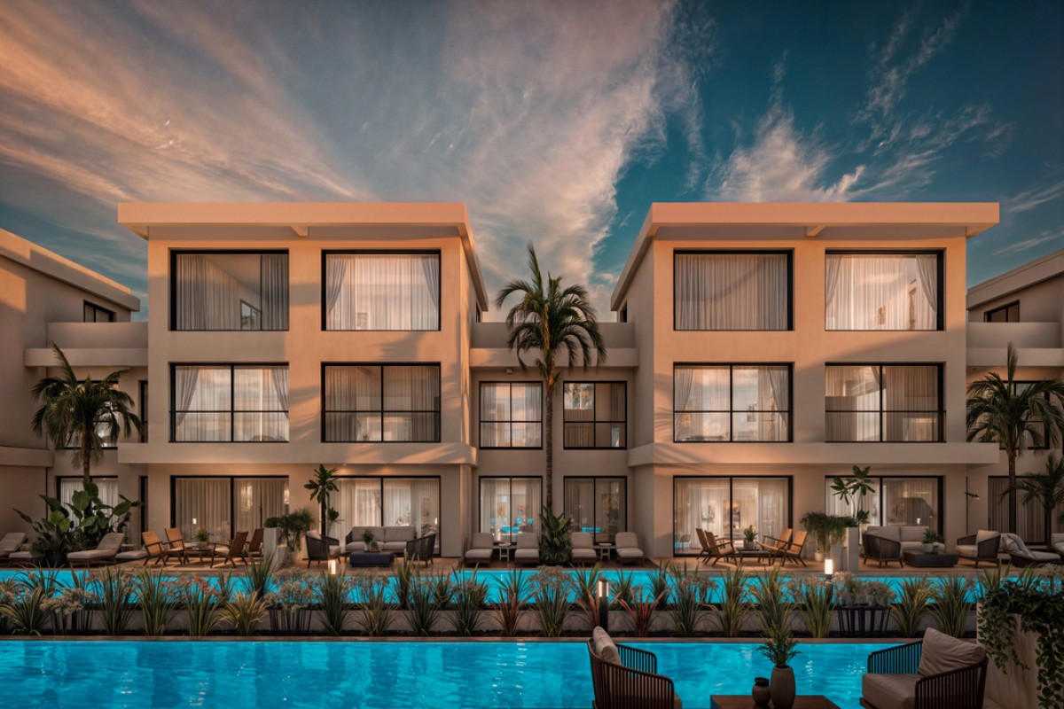 Residential complex ID 233 is located in Boaz (Iskele district) on the East coast, 700 meters from the sea. The residents of the complex can use various on-site amenities: a communal pool and a children's pool, a water park, a playground, a restaurant, a cafe and a bar, surface parking, a gym, a basketball and volleyball court, a football field, a tennis court, a mini-golf course, a SPA, retail outlets, a children's room, bicycle and walking paths. The landscaped territory is controlled by a 24-hour video surveillance system.