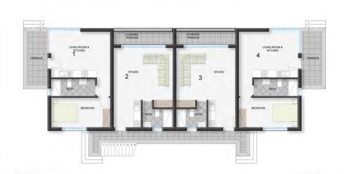 The residential complex consists of 7 low-rise residential blocks, offering studios and 1+1 apartments on the ground floors, and 1+1 and 2+1 loft penthouses on the first floors.