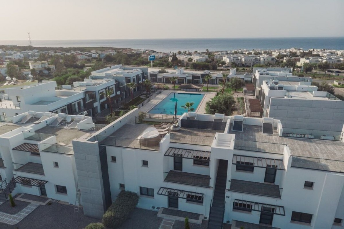 Project ID 244 is located in the Esentepe area, 700 meters from the coastline and only 1.5 kilometers from the popular golf course Korineum Golf & Beach Resort. The residential complex consists of 4 two-story residential blocks with 3 + 1 apartments on the ground floor and 2 + 1 penthouses on the first floor, as well as two 4+1 townhouses. Ground floor apartments have terraces and private gardens, while 1st floor apartments have spacious roof terraces with sea and mountain views.