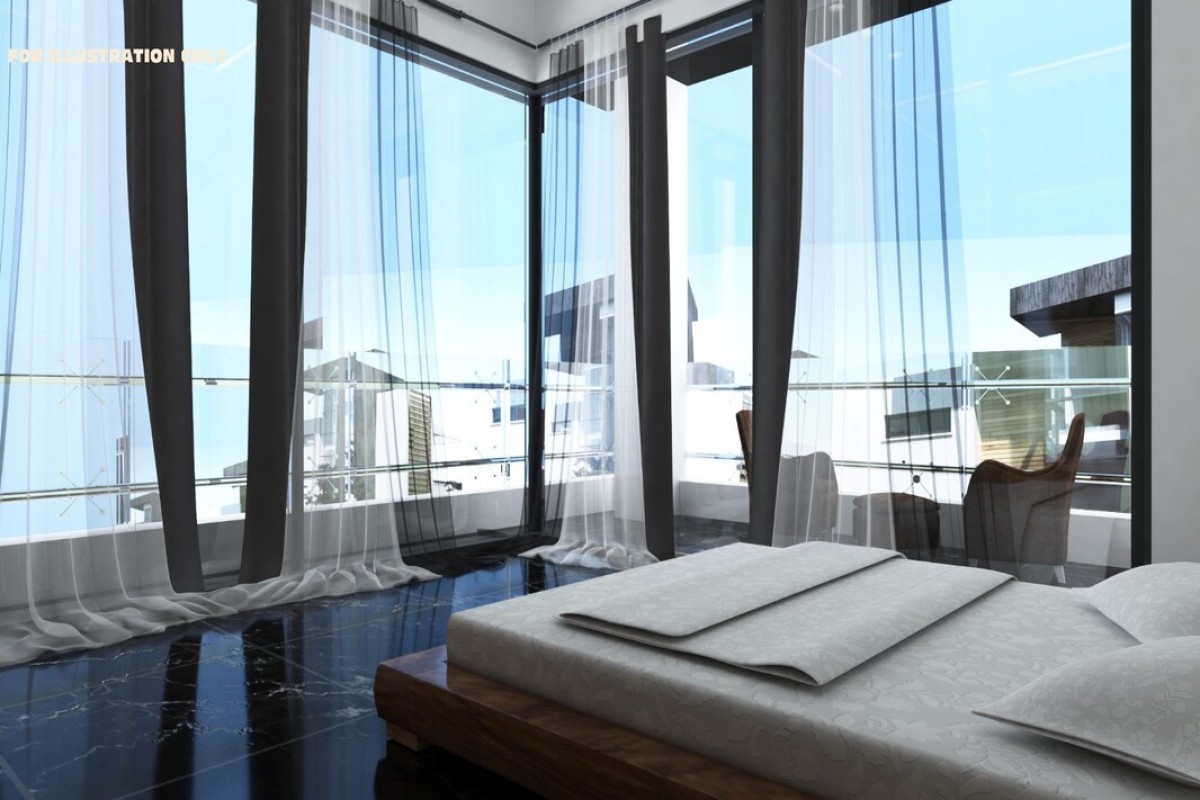 The price includes full interior finishing using natural stone and wood, built-in furniture (built-in wardrobes in the bedrooms, built-in kitchen cabinets with granite countertops), ceramic flooring, equipped bathrooms with installed sanitary ware, underfloor heating, entry and interior doors, hidden air conditioning system, and double glazed windows. Villas have roof terraces, private plots from 400 to 496 sq.m., as well as a possibility of installing a swimming pool and a barbecue area with a pergola.