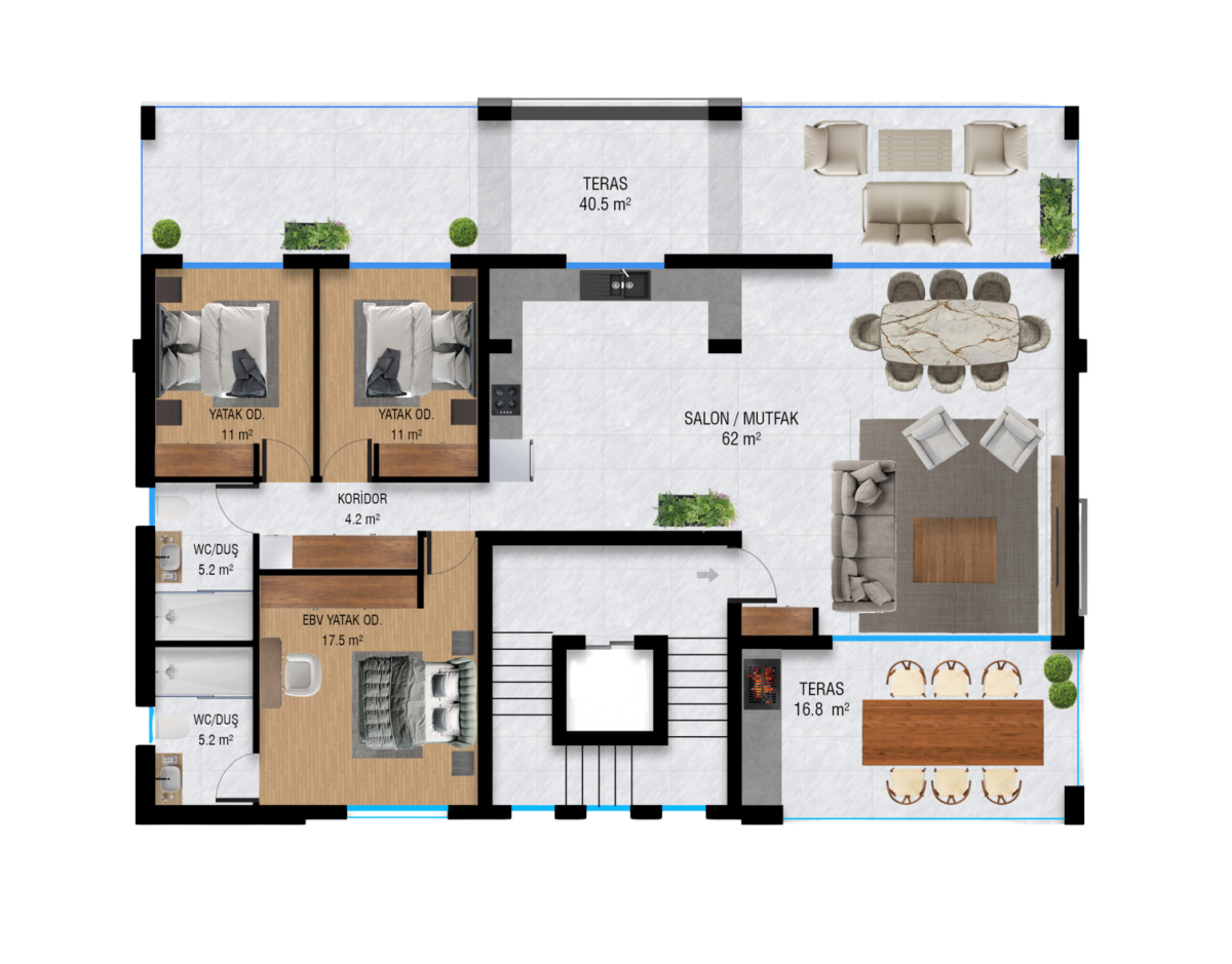 New residential complex ID 250 is located in the prestigious Canakkale district of Famagusta. The complex stays within walking distance to all the necessary urban infrastructure: schools, day-care centers, private clinics, supermarkets, beauty salons, gyms, pharmacies, restaurants, cafés, and much more. Eastern Mediterranean University, the largest university in Northern Cyprus, and City Island University, the historical sites of Salamis and equipped beaches are in the direct vicinity. Ercan Airport is a 40-minute drive away.