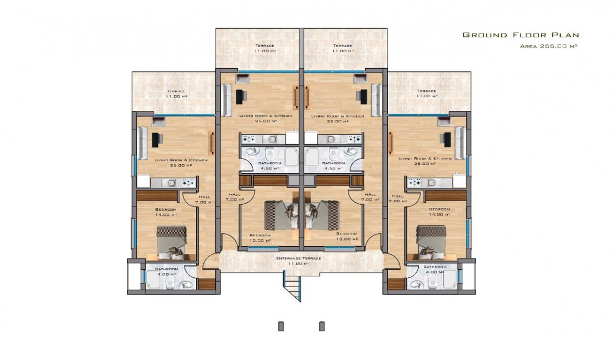 ID 011 residential complex is located in a picturesque place close to Esentepe. The project consists of 7 2-storey apartment buildings featuring 1+1 (1-bedroom) and 2+1 (2-bedroom) apartments. The complex features saltwater swimming pool, landscaped green areas, car parks. You can choose from the apartments overlooking the sea and the mountains.
