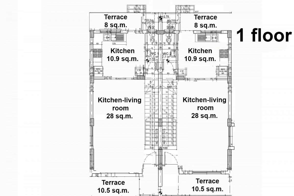 The price of the townhouse includes full fit-out, built-in furniture, sanitary ware. The townhouse building is equipped with high pressure water supply system and double-glazed windows.