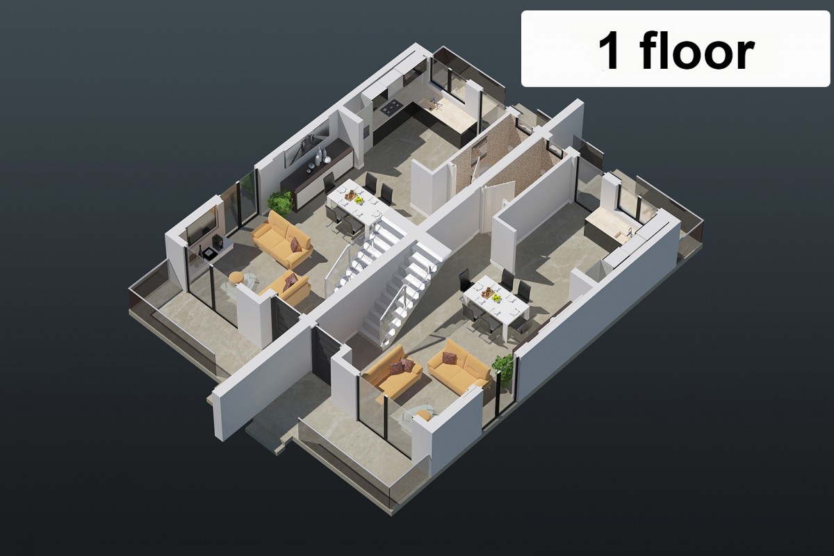 The townhouse ID 023017 is one of the 10 types of buildings, presented in the residential complex of ID 023. The complex is a large-scale project situated on 36 hectares of land and consisting of 3 construction phases. A well-developed infrastructure, active centres and 1,122 housing units make ID 023 the biggest project with no analogues in Northern Cyprus. There are apartments with the sea- and mountain views.
