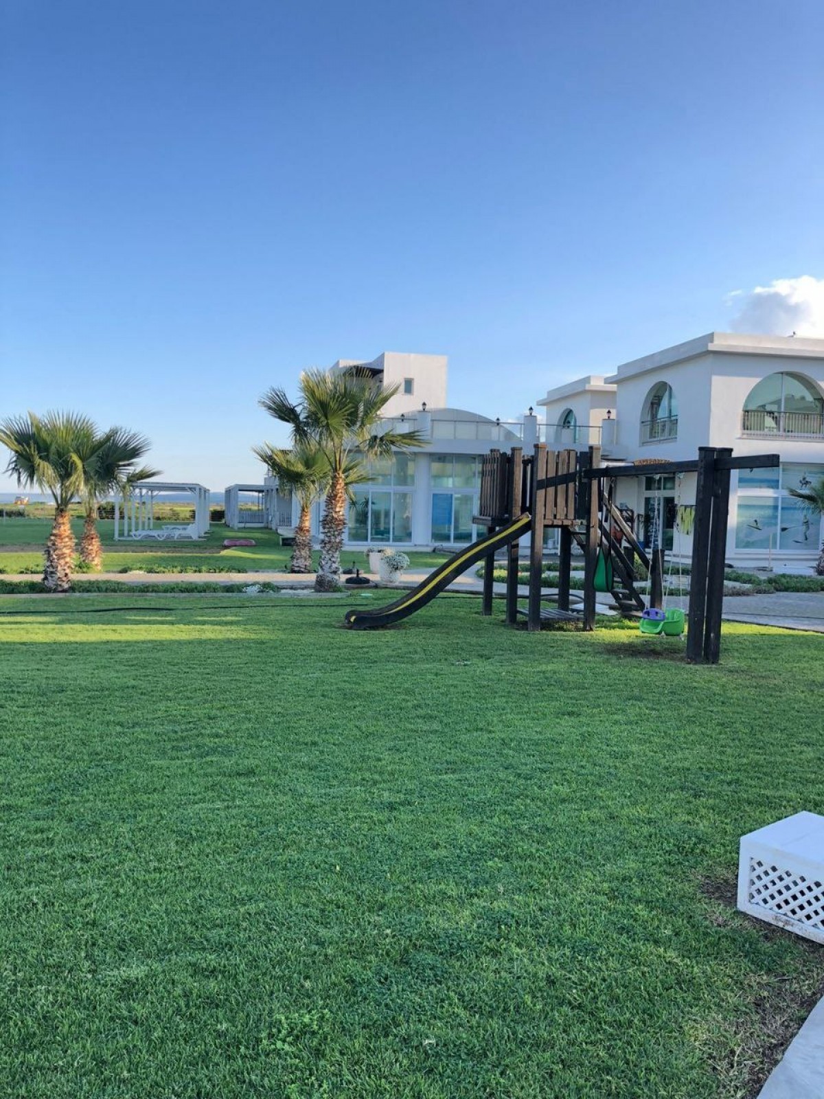 The complex is located a few steps from a beautiful well-developed beach. The project offers all necessary amenities: an infinity pool, a restaurant, a spa, a fitness center, a jacuzzi, a heated indoor pool, a mini-market, a surf school, bars, and restaurants. The proximity to Guzelyurt provides the entire urban infrastructure, including shops, markets, schools and kindergartens, hospitals, and a university.
