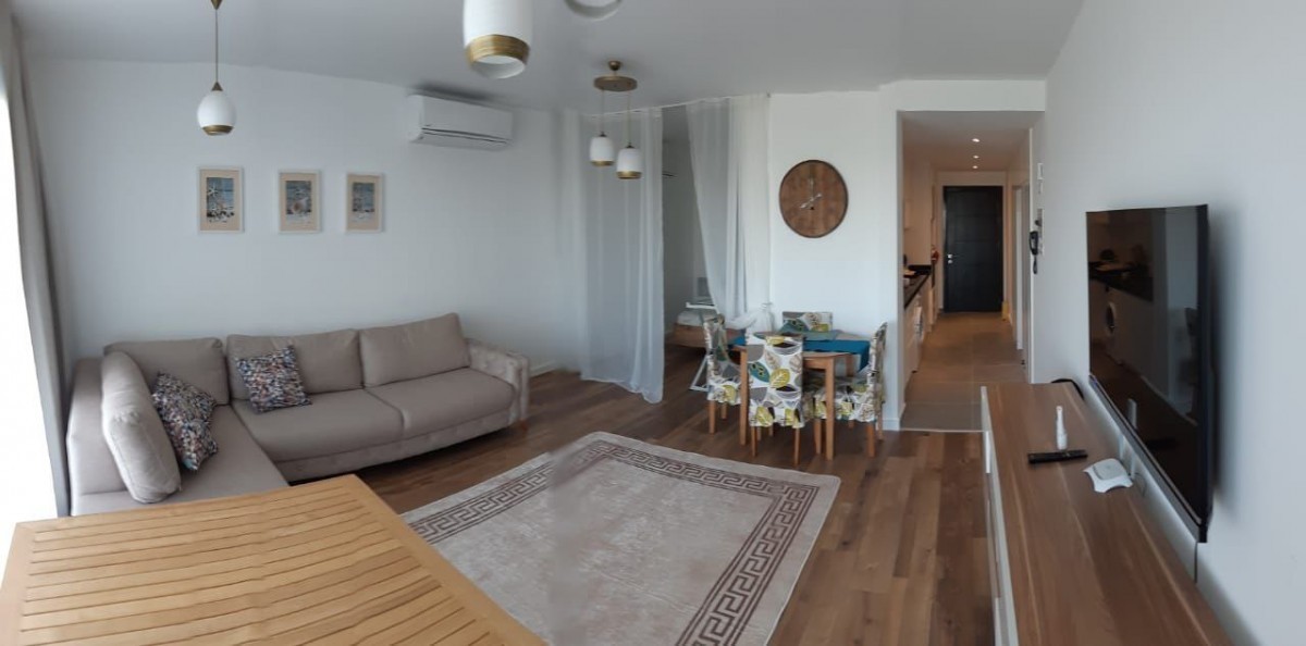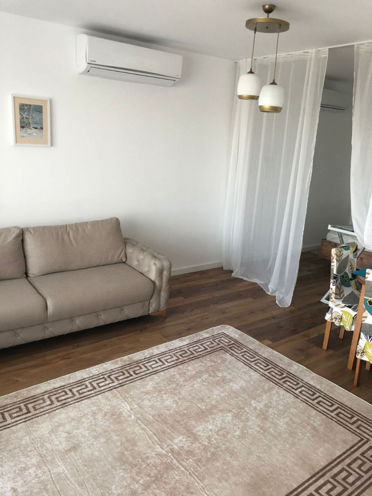 The apartment is completely ready to move in. The balcony offers views of the sea and mountains.The apartment building is equipped with an elevator, high pressure water supply system and double-glazed windows.