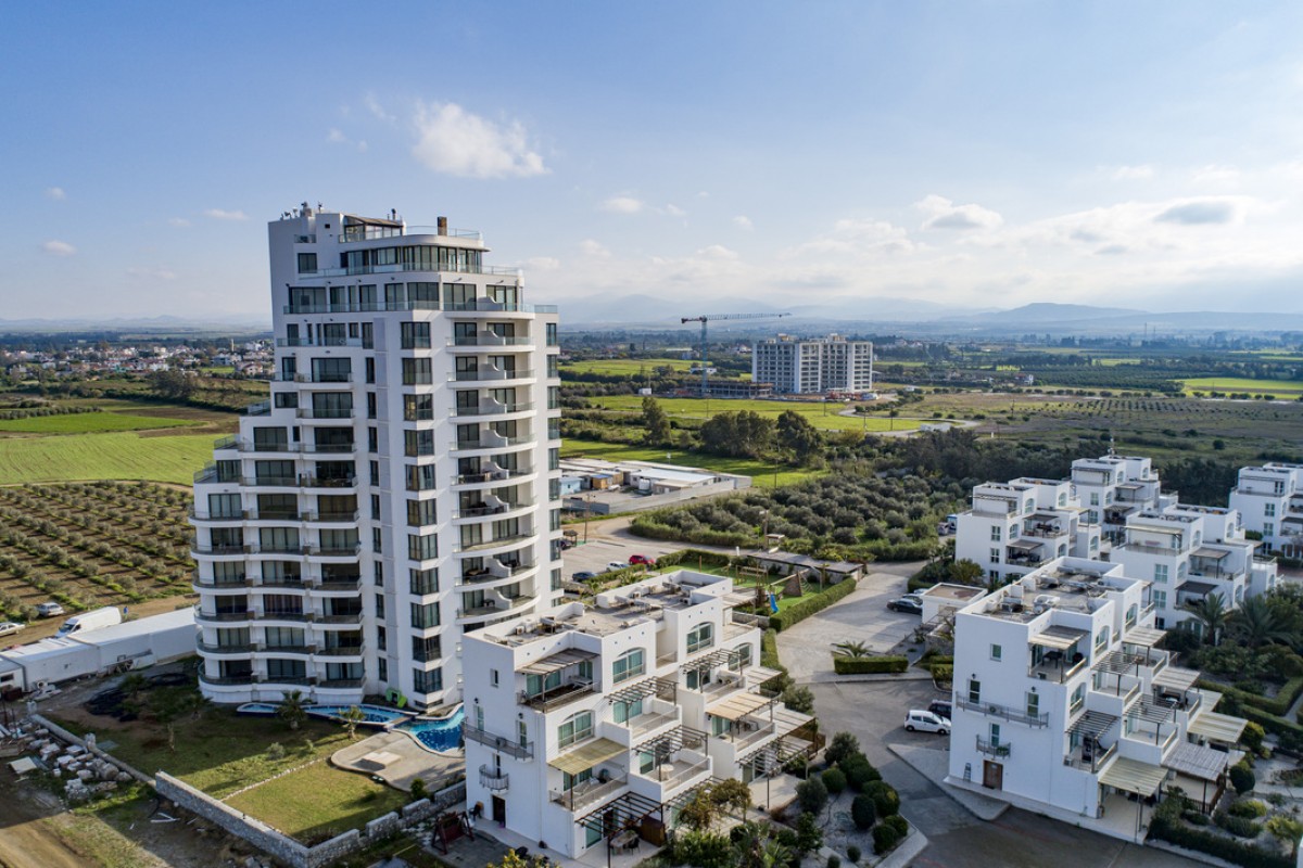 The residential complex is located on the west coast of Cyprus just a few meters from the beach, surrounded by orange groves. Not far from the complex lies the city of Guzelürt. The project includes parking, Internet infrastructure, and satellite infrastructure. The residential complex is maintained by a management company.
