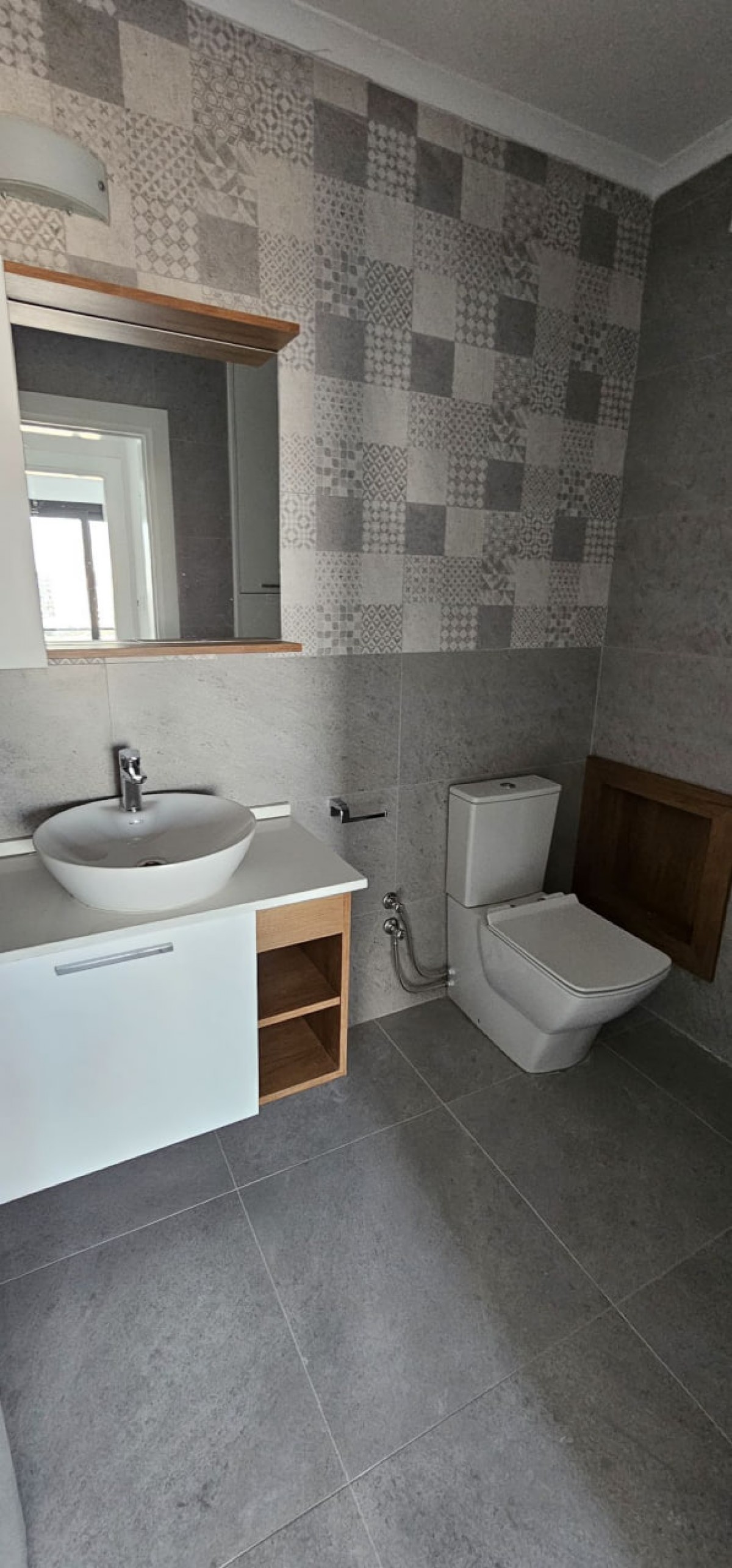 - bathroom with an integrated toilet