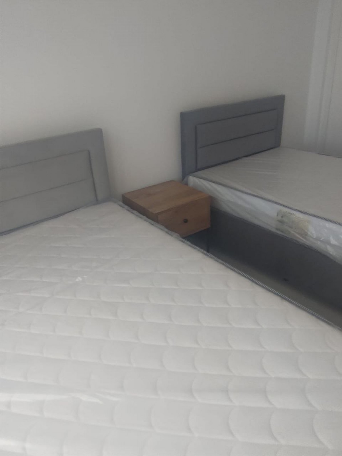 - furniture: beds in bedrooms, sofa, tables and chairs in the living room.