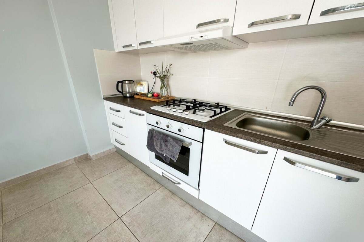 The apartment is completely ready to move in. The balcony offers views of the sea and mountains.The apartment building is equipped with an elevator, high pressure water supply system and double-glazed windows.